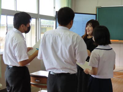 1年生の論理表現Ⅰ(英語)の授業の様子です。今日の授業では現在進行形と過去進行形について学習しました。生徒たちは活発に意見交換を行っていました。