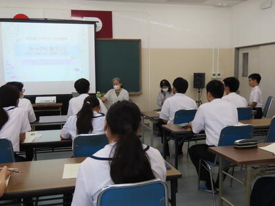 9月27日(水)、性教育講演会を行いました。NPO法人こころのサポートセンター・ウィズより講師をお招きし、デートDVについて講演をしていただきました。講演の中で、デートDVのことやよりよい関係の作り方などについて学びました。
