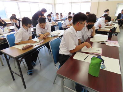 倉岳校の3年生は夏休み中も学校に登校し、進学希望者・公務員希望者は個別指導を、就職希望者は就職ガイダンスや職員との面接練習をしています。