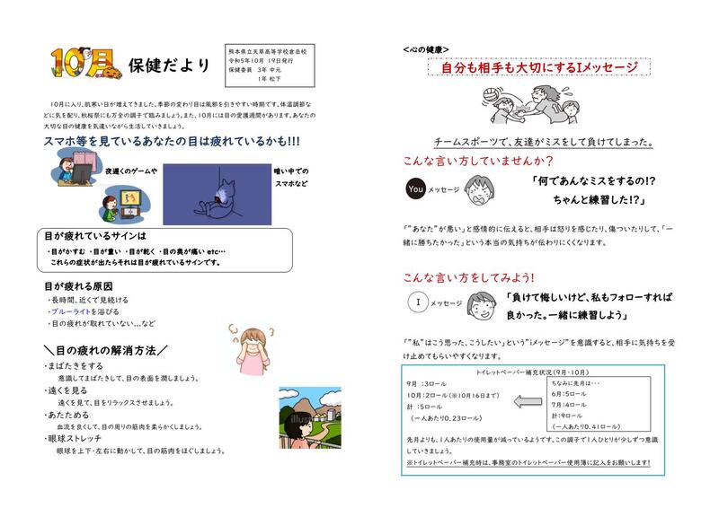 11月1日(水)、全校集会が行われました。全校集会では保健室よりインフルエンザの流行やインフルエンザの予防について講話をしていただきました。