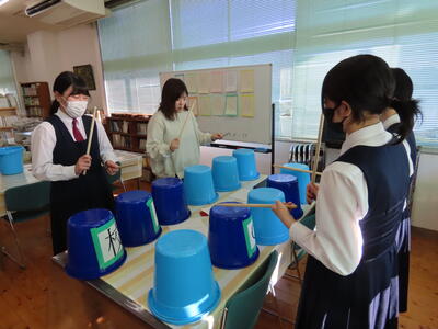 倉岳校では現在、生徒たちが11月12日(日)に行われる秋桜祭に向けて準備を頑張っています。3年生はバケツを利用したパーカッションの演奏を披露する予定で今日も練習に励んでいます。