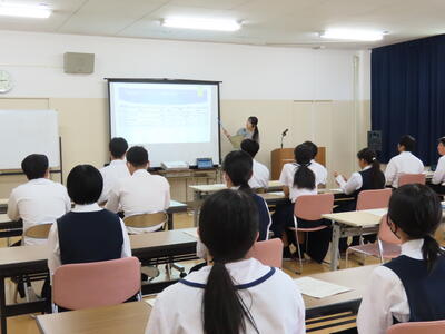 12月19日(火)、スクールカウンセラーの先生を講師としてお招きし、ストレス対処講演会を行いました。生徒たちはストレスによる心身への影響やストレスの発散方法について学び、自分のストレスの発散方法などについて考えました。