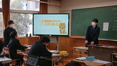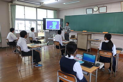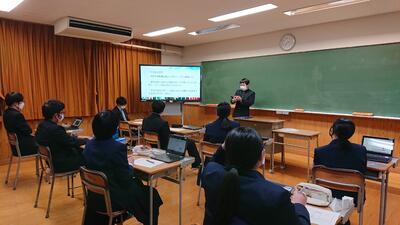 11月20日(月)、1年生の総合的な探究の時間に天草市役所から講師をお招きして、天草市の現状や課題についてお話をしていただきました。