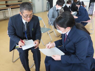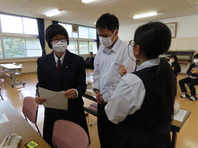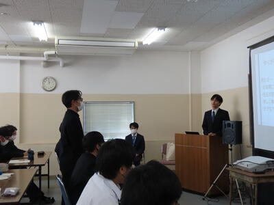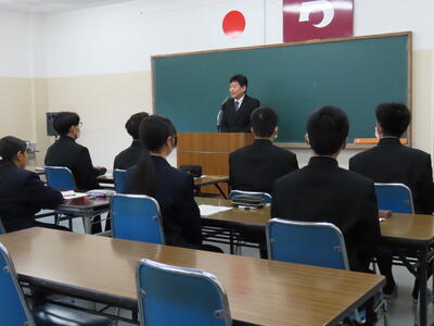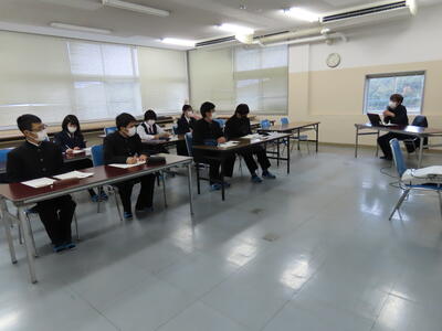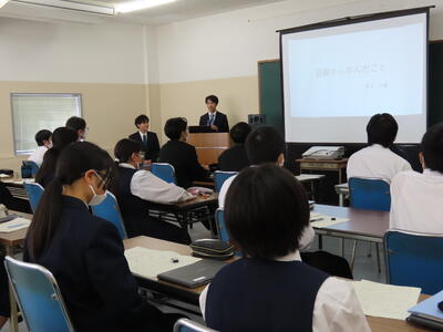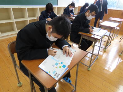 12月20日(水)、22(金)、3年生がホームルームで、自らの進路決定に至る体験を各自まとめて発表しました。これは2月に行う卒業予定者体験発表会に向けて、クラス内で開催したものです。生徒たちは真剣に活動を振り返り、まとめていました。質疑応答も行い、お互いいろいろな気づきもあったようです。入社・入庁・進学後も、この思いを大切にして頑張っていってください。