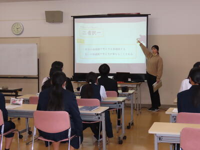 12月8日(金)、校内分野別進路ガイダンスを行いました。本校卒業生、熊本保健科学大学、尚絅大学短期大学部、公務員ゼミナールやジョブカフェ・天草ブランチより講師をお招きして、就職、進路先での体験談や自分の興味がある専門分野に関する話を聞き、進路選択について学習しました。