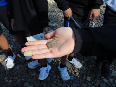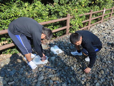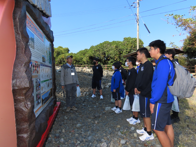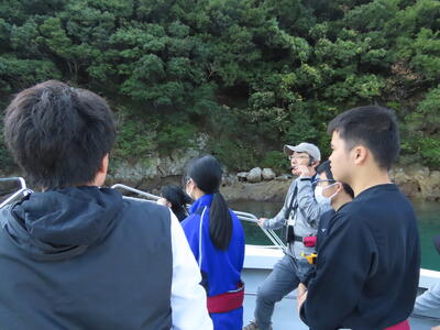11月22日(水)、科学と人間生活の授業の一環として1年生が御所浦へ野外実習に行きました。実習では化石採集や断層の見学などを行いました。化石採集では生徒が二枚貝の化石を発見しました。