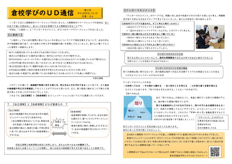 10月21日(土)9:30、倉校生が笑顔くらんたけ交流会に参加してきました。生徒たちは交流会の司会を行ったり、レクリエーションに参加したりし、地域の方と交流を深めることができました。