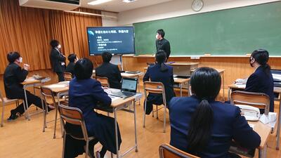 9月28日(木)、2年生の家庭総合でホームプロジェクト発表会が行われました。家庭総合の授業で学習 したことを実際の自分自身の生活に活かすことで理解を深めることを目的としています。生徒たちは身近な生活から「好き嫌いをなくす」、「家族を少しでも楽に」や「防災食を作る」などをテーマにして研究し、発表を行いました。