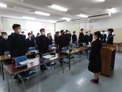 1月16日(火)~1月19日(金)で倉岳校の2年生が関西に修学旅行に行ってきます。1月15日(月)に修学旅行の出発式が行われました。
