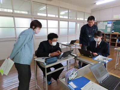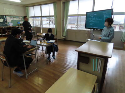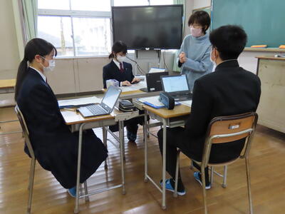 1月15日(月)の総合的な探究の時間の動画班の様子です。動画班は倉岳・御所浦の魅力を伝える動画を作成する課題研究を行っています。現在はどのような動画を作成するとより魅力を伝えることができるかを研究しています。