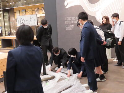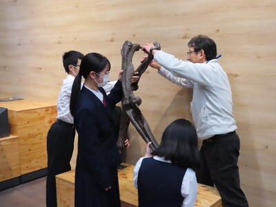 1月17日(水)、1年生と3年生が科学と人間生活の授業の一環として、令和6年3月に開館予定の御所浦恐竜の島博物館の見学に行ってきました。博物館の見学に加え。プロバクトロサウルスの組み立ても体験させていただきました。