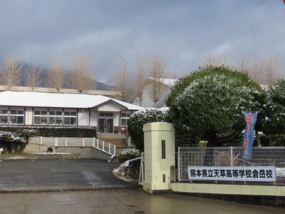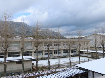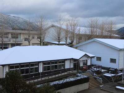 1月24日(水)の学校の様子です。倉岳校では昨日から降っている雪で、校舎が化粧をしました。