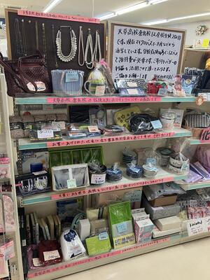 同窓会では秋桜祭の際に実施したリサイクルバザーを引き続き栖本にあるドラックストアミキで販売しています。