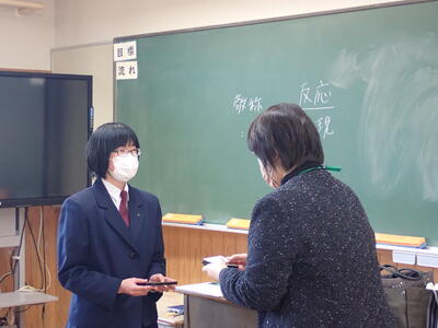 質疑応答後、聞き手だった生徒は、発表内容の評価をGoogleフォームから回答しました。