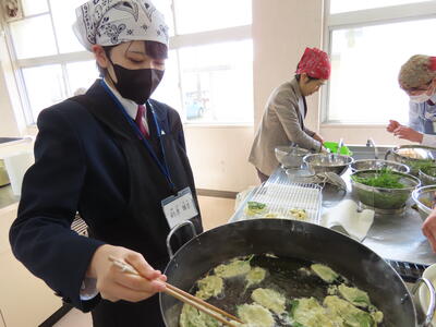 2月16日(金)、3年生が倉岳婦人会のの方に御協力いただき、郷土料理を作りました。この調理会で天草の郷土の味の伝承や、郷土の良さを学んだり、野草を摘み食することで、自然の恵みに感謝し自然を大切にする心を学びました。