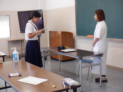 9月17日(火)3・4限目に、2年生の「生活と福祉」の授業で、講師として介護福祉士・ケアマネージャーの谷口眞利子様をお招きし、介護実習を実施しました。