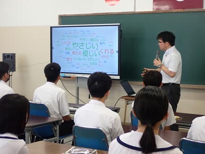 生徒は、時折、驚いたり、笑ったり、メモをとったりしながら60分間集中して講演を聞いていました。