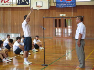 <教頭あいさつ> <生徒会長あいさつ> <選手宣誓>