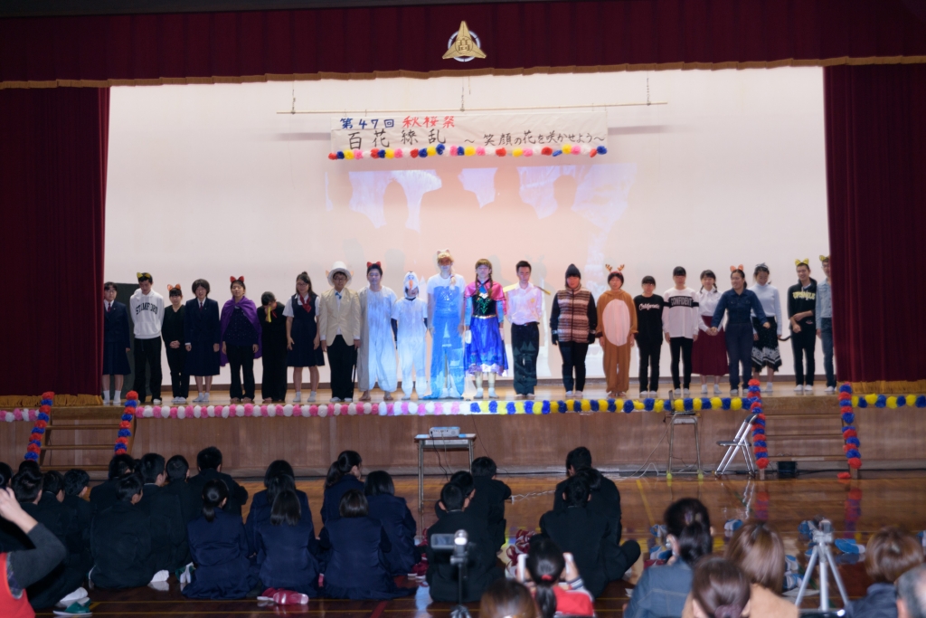 11月11日(土)、第47回『秋桜祭』を開催いたしました。今年のテーマは『百花繚乱~笑顔の花を咲かせよう~』でした。今年も育友会の皆様をはじめ、多くの方々のご協力のもと秋桜祭を成功させることができました。一部ではございますが、その様子をお楽しみください。