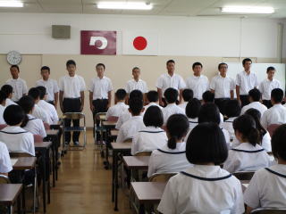 7月7日(金)全国高等学校野球選手権熊本大会に出場する野球部の選手推戴式を行いました。試合は7月13日(木)八代球場にて第1試合目に行われます。試合当日は、グラウンドで精一杯頑張る野球部10名に全校生徒一丸となってエールを送ります。保護者の皆様、地域の皆様、応援よろしくお願いします。
