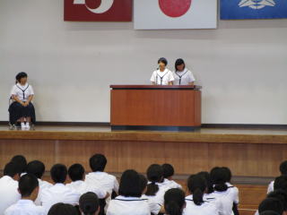 7月3日(月)生徒会役員選挙立会演説会が行われました。新しい生徒会役員に立候補した3名と応援演説者による立会演説では、よりよい倉岳校を目指し、新生徒会役員として皆を引っ張っていく強い意志を堂々と伝えていました。