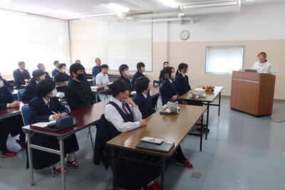 最後に、代表生徒が謝辞を述べ、講演会を終了しました。中本様、お忙しい中、倉校生のためにお時間を頂きありがとうございました!今後ともよろしくお願いします!