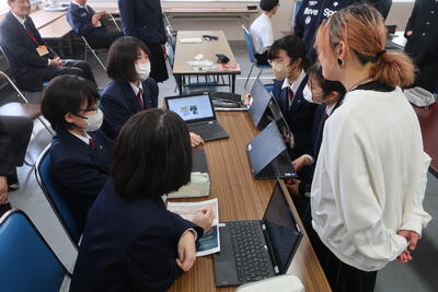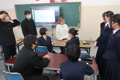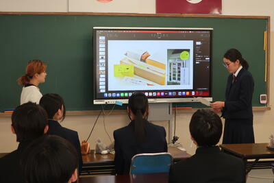 中本様は倉岳にルーツをお持ちで、高校までは熊本県で過ごされたそうです。その後、東京芸術大学で専門性を高められ、現在はデザイナーとして活躍されています。今回の講演では、前半に倉校生への学校生活や進路実現のご助言を頂き、後半は天草戦国ミュージアム連携事業として企画・開発した商品等について、実現化に向けたアドバイスや助言をいただきました。