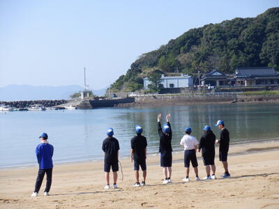 11月14日(木)、水中ドローン講習会が倉岳町の「えびすビーチ」にて行われました。倉岳校では、県立学校の事業である「One Team プロジェクト」として、ドローンを活用した探究活動を行っています。今回は、今年度3回目となる水中ドローン講習会に1年生が参加しました。