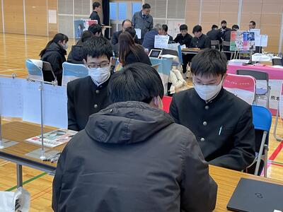 今回は10名の生徒が参加し、各ブースで真剣に話を聞き、進学に対して気になっていること、不安に思っていること、疑問などを相談している姿が見られました。大変主体的に参加ができており、進学に対する意識の高さを感じました。今後も進路選択に必要な知識を積極的に身に付けていきましょう!