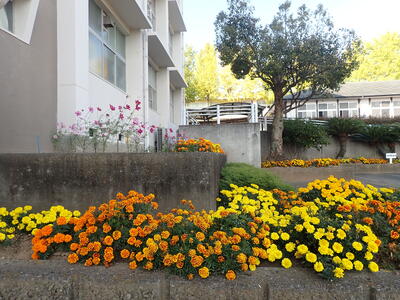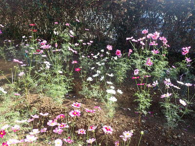 秋も深まり、昼間でも日がささないと寒さを感じるようになってきました。今年は秋が足早に過ぎていくようですね。3年生は進路決定への路を頑張って進んでいます。コスモスは秋桜祭後、またどんどん花を開き、昨日一昨日くらいに満開を迎えていました!