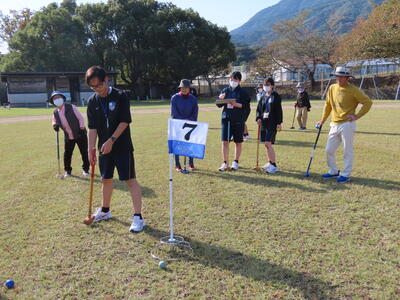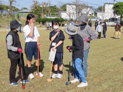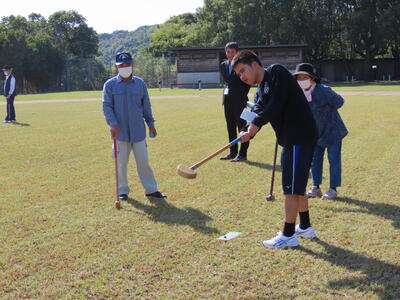 倉岳校では毎年「倉岳校福祉の日」という行事を行っています。令和5年度は10月26日(木)を「倉岳校福祉の日」として、福祉に関する学習や地域の老連会の方と交流を行いました。午後からは天草市老人クラブ連合会倉岳支部の方とグランドゴルフをプレーし交流を深めました。