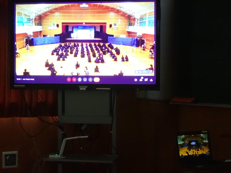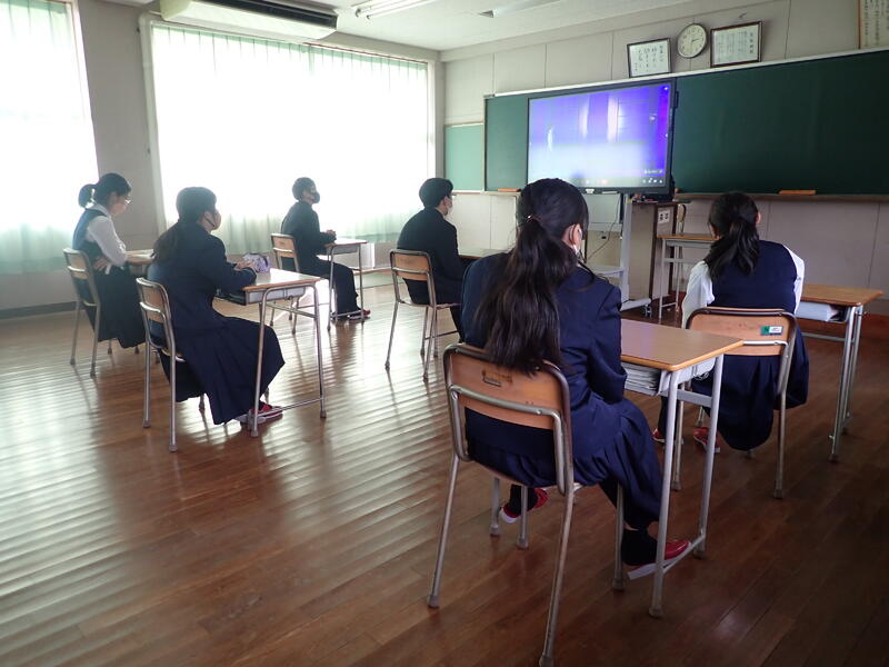 12月7日(水)、本校である天草高校でミュージカル鑑賞会が行われ、倉岳校は新型コロナウイルス感染拡大防止のため、オンラインで鑑賞会に参加しました。劇団わらび座の皆様をお招きし、演目『いつだって青空~ブルマー先生の夢~』を鑑賞しました。日本女子体育の母、井口阿くりさんがアメリカ留学を終え、東京高等女子師範学校の教授として、"女子体育を教える女性の教師"を育成すべく奮闘していました。当時の日本では女性に対する差別が顕著で、女性が運動することをたたかれたり、ブルマー先生と陰口を言われたりと難しい立場に立っていましたが、逆境にも笑顔を忘れず立ち向かっていく女性でした。