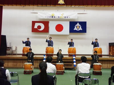 オープニングを飾った総合文化部、有志による「えびす太鼓」