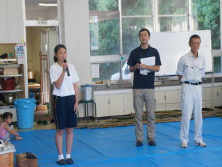 <教頭挨拶> <育友会会長挨拶> <飲み物準備の様子>