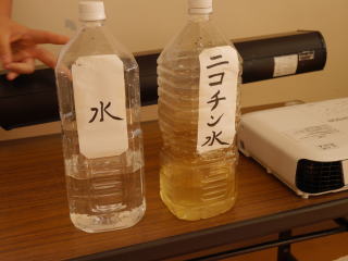 10月26日(木)学校薬剤師の江浦先生を講師としてお招きし、薬物乱用防止教室を行いました。今年度は、特にタバコの害や受動喫煙について講話をしていただきました。ニコチンを溶かした水の色を見て、臭いを確認したり、タバコを吸うと体へどのような影響があるかミミズを使って実験することで、タバコの恐ろしさを学ぶことができました。江浦先生、ありがとうございました。