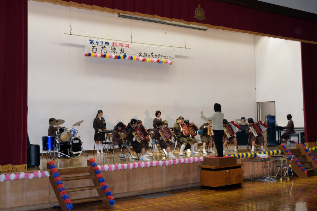 11月11日(土)、第47回『秋桜祭』を開催いたしました。今年のテーマは『百花繚乱~笑顔の花を咲かせよう~』でした。今年も育友会の皆様をはじめ、多くの方々のご協力のもと秋桜祭を成功させることができました。一部ではございますが、その様子をお楽しみください。