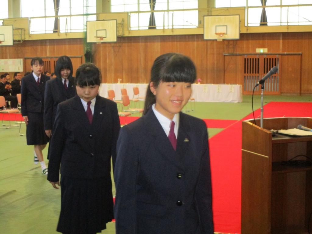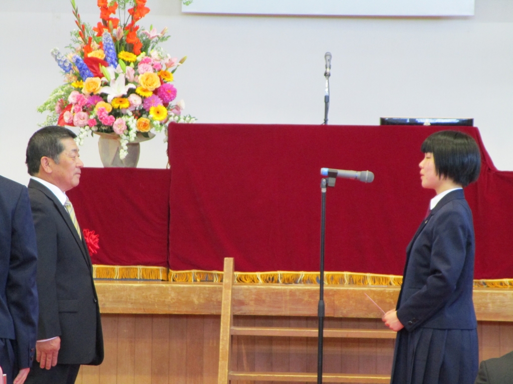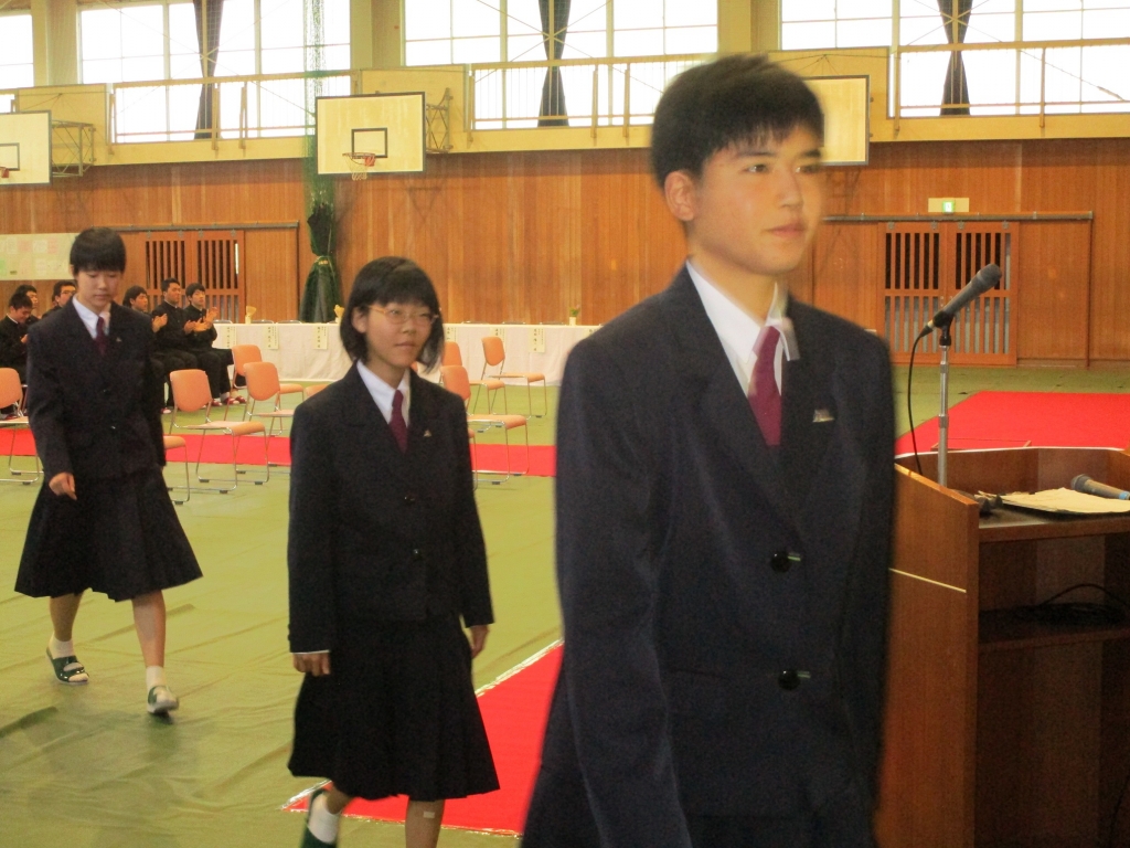 <校訓・生徒綱領唱和> <入学祝い金贈呈> <保護者代表あいさつ>