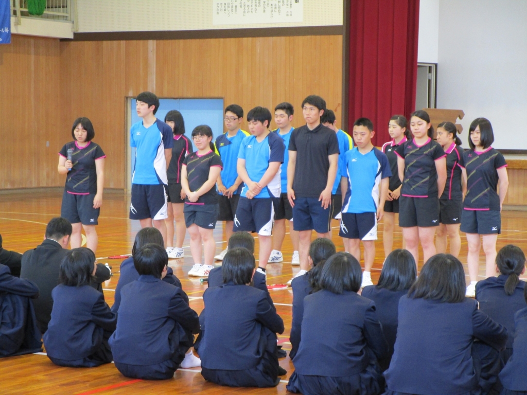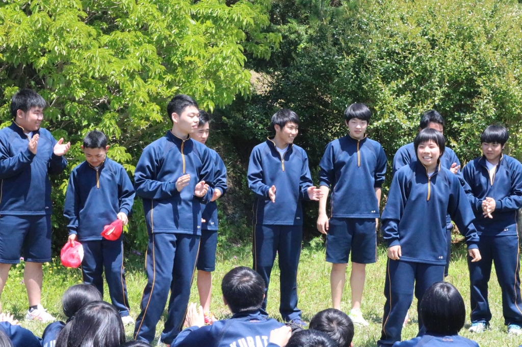 4月11日(水)生徒会執行部主催の対面式および部活動紹介を行いました。新入生と在校生の交流のためにレクリエーションを行い、とても楽しい対面式となりました。部活動紹介では、各部さまざまな工夫を凝らした紹介を行っており、新入生に各部活動の魅力を精一杯アピールしていました。