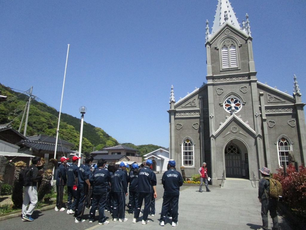 4月20日(金)、本年度の歓迎遠足は崎津集落、天草ロザリオ館へ行ってきました。キリシタン文化についての説明を聞き、施設を見学して地域の歴史についての学びを深めました。十三仏公園で歓迎行事を行い、1年生や今年度来られた先生方と楽しく交流することができました。