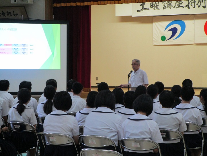 8月4日(土)、明治大学国際日本学部教授の長尾様を講師としてお招きし、土曜講座特別講演会を実施しました。「学校魅力化と地域魅力化」を演題として、今後の人材として求められる力や地域とともにある学校づくり、情報発信の必要性についてご講演いただきました。同窓生や地域の方々、多くの方が参加されました。長尾様ありがとうございました。講演会の後は同窓会総会が行われました。