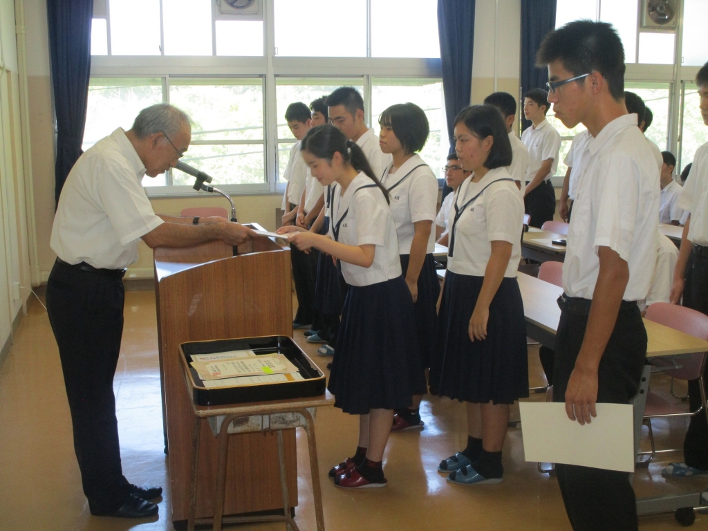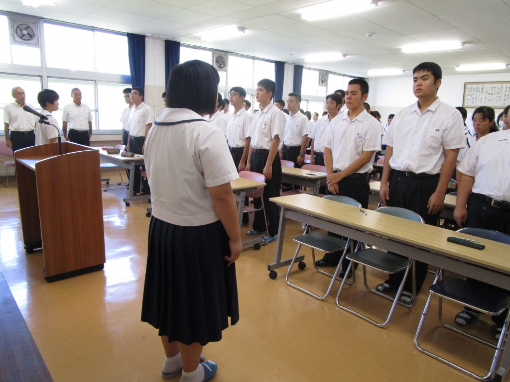 9月3日(月)表彰式及び2学期始業式を行いました。表彰式では、検定などで優秀な成績を修めた生徒が表彰されました。多くの生徒が夏休み中も学校に登校し、課外や部活動、受験に向けての勉強などに精一杯励んでいました。