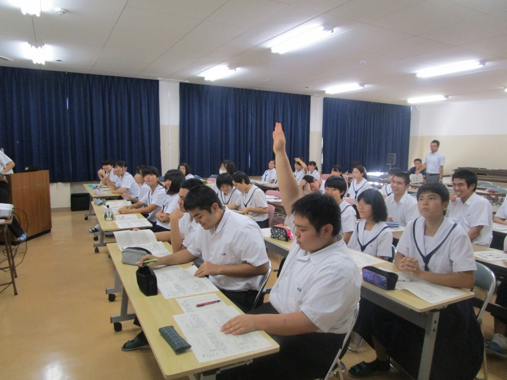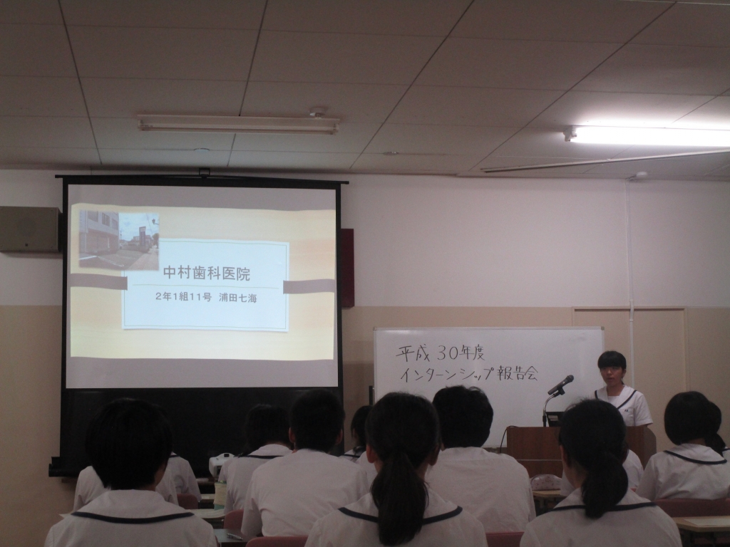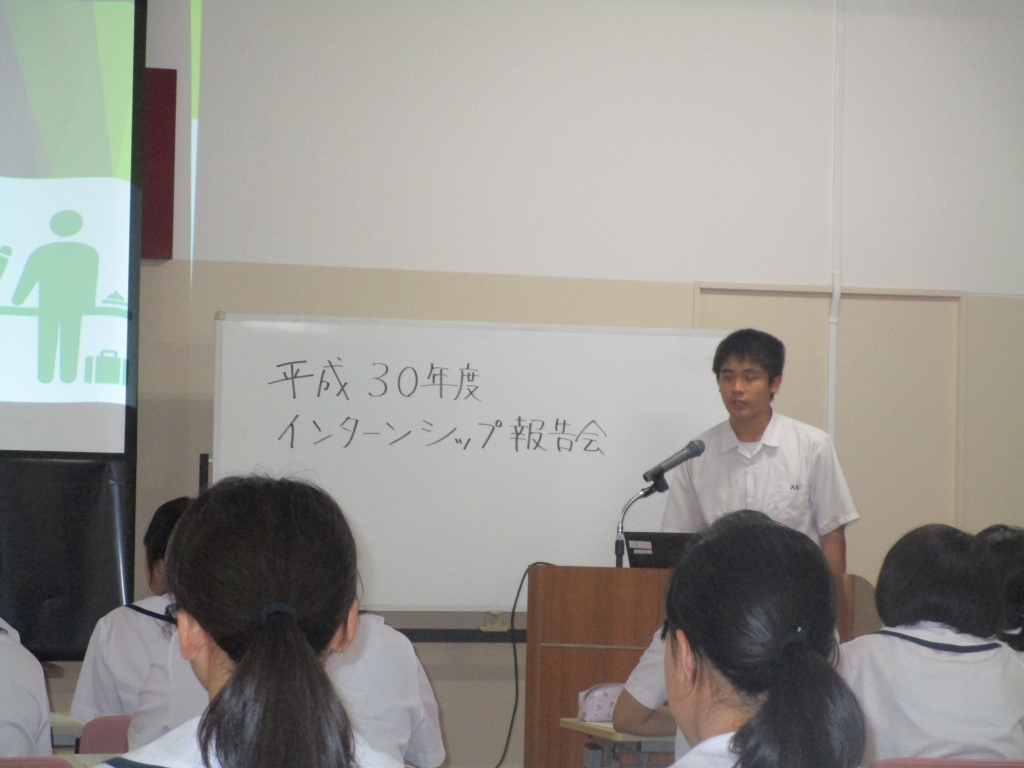 9月27日(木)、夏季休業中に2年生が行ったインターンシップのまとめとして、報告会を実施しました。普段経験することができない多くの体験をした2年生が、働くことの厳しさや喜びなどを1年生にしっかりと伝えていました。1年生にとっても良い刺激となった報告会でした。