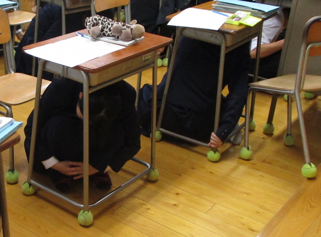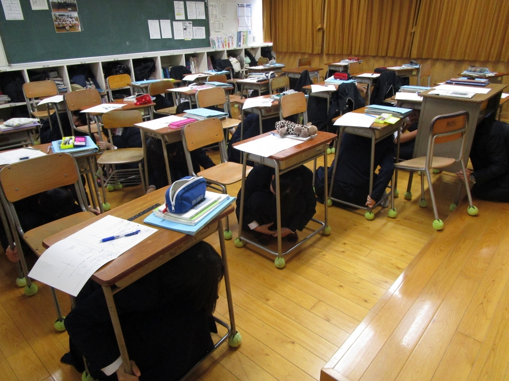 11月1日(木)熊本シェイクアウト訓練を行いました。「シェイクアウト訓練」は、県下一斉に実施された防災訓練で、防災について考え、災害時にしっかり自分の身を守ることができるようにする訓練です。生徒たちは素早く机の下に身を隠し、真剣に訓練に取り組んでいました。