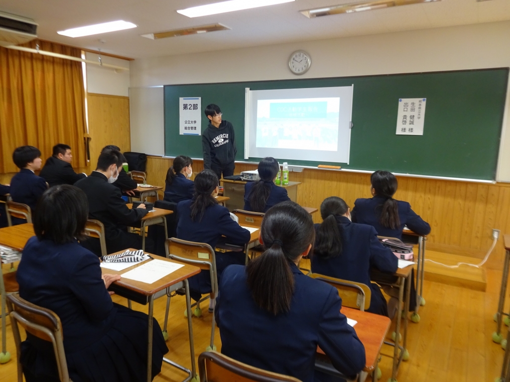 11月30日(金)校内分野別進路ガイダンスを実施しました。大学、短大および専門学校の先生方をお招きして、進学後どのようなことを学ぶのかについてご講演いただきました。生徒たちは、真剣な表情で話を聞いており、今後の進路決定のために多くのことを学ぶことができました。ご講演いただいた講師の皆様、ありがとうございました。