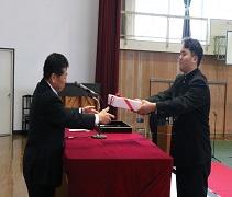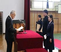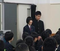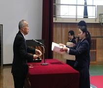 2月28日(水)3年生の表彰式を行いました。これまでの体育活動や文化活動、皆勤・精勤などの努力を称え表彰されました。午後は、同窓会入会式を行いました。卒業後はOB・OGとして倉岳校を支えていってほしいと思います。
