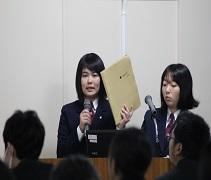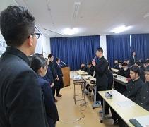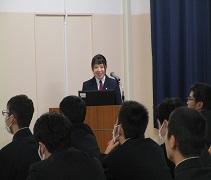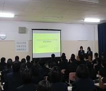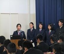 午後、今年度卒業予定者を代表して9名が合格や内定を勝ち取るまでの体験を発表しました。代表となった3年生は緊張しながらも一生懸命発表し、1・2年生は真剣に先輩の話を聴いていました。