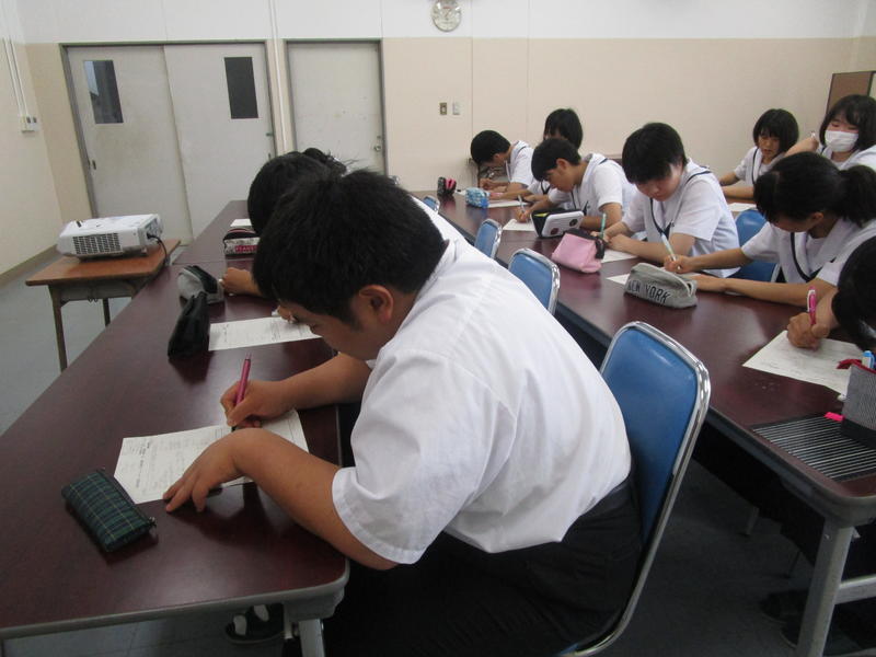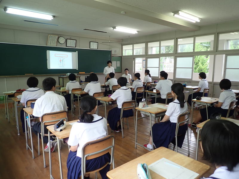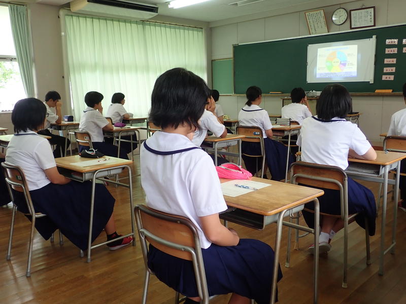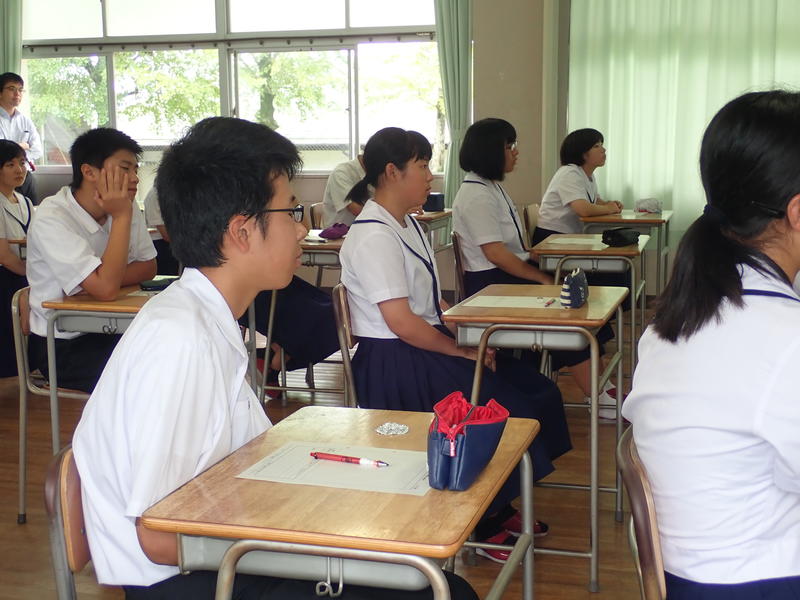 7月22日(月)、体験入学を実施しました。学校概要説明や部活動紹介、模擬授業体験、在校生との質疑応答、部活動見学などを行いました。暑い中での実施となりましたが、7校から84人の中学生が参加しました。