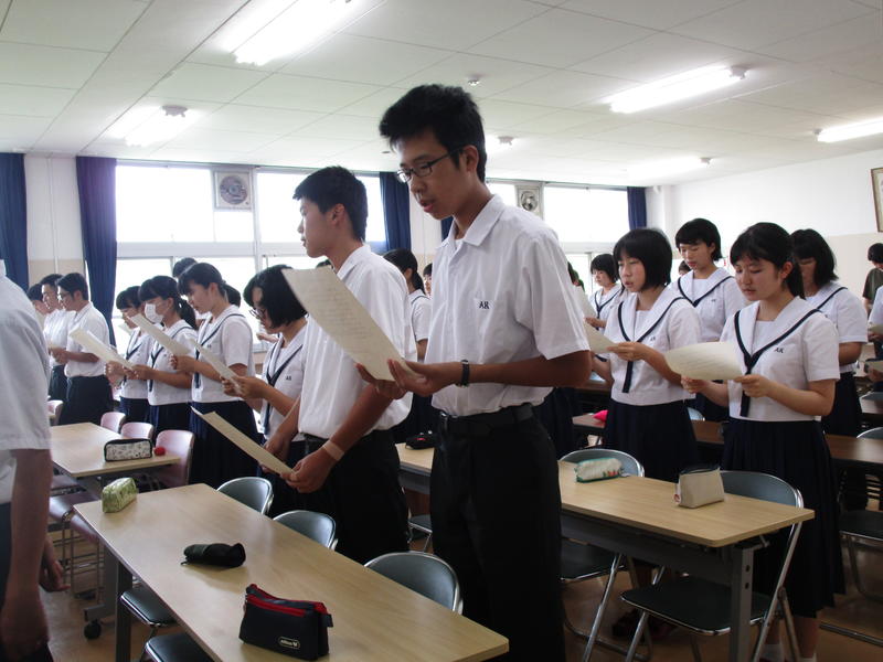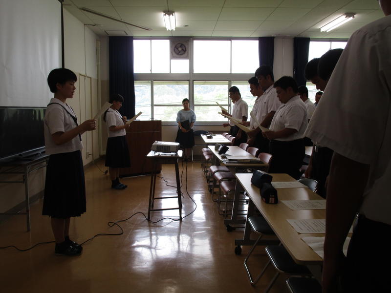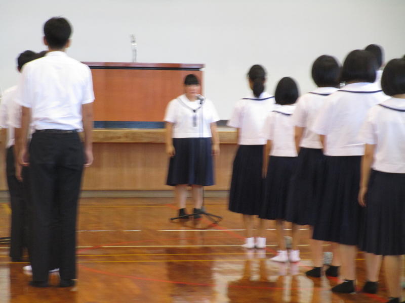 <いじめを許さない宣言文唱和・校訓・生徒綱領唱和・校歌斉唱>