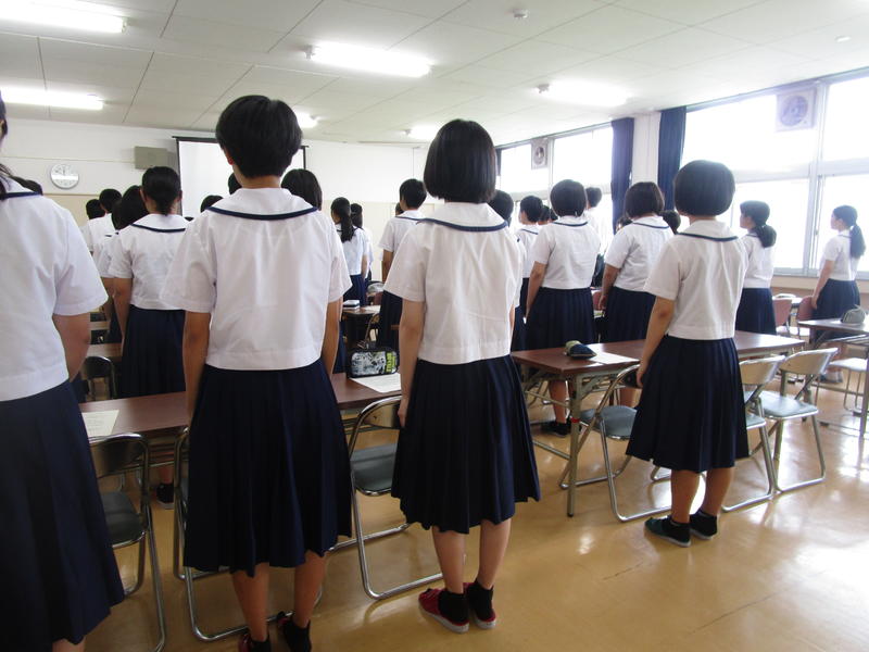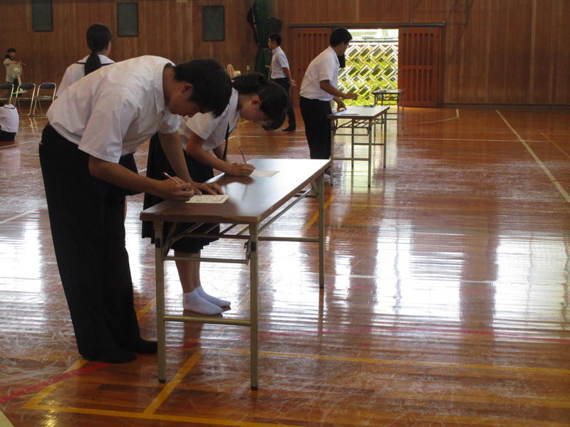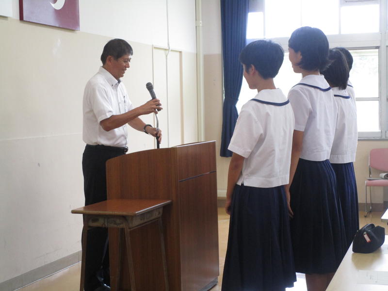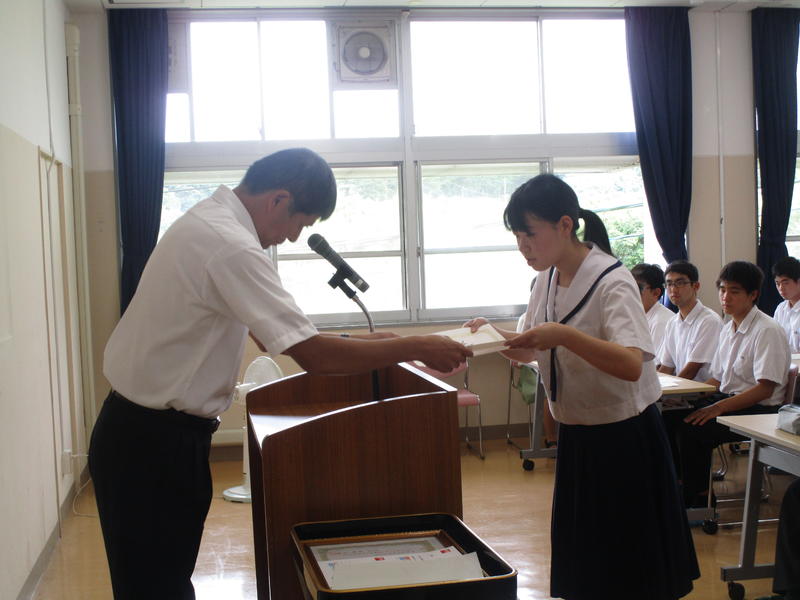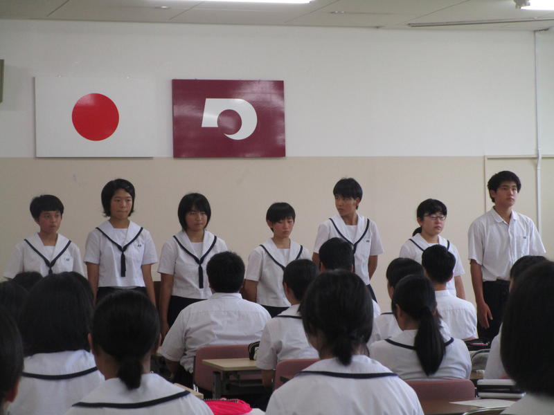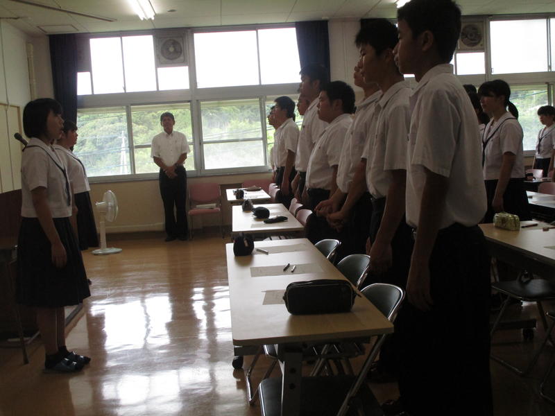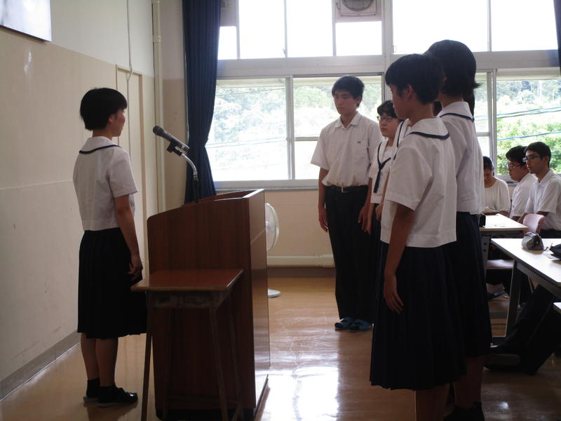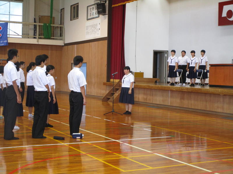 7月19日(金)、1学期の終業式と先日行われた生徒会役員選挙を経て選ばれた新生徒会役員及び新委員長の認証式、表彰式、激励会を行いました。
