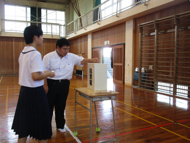 7月8日(月)、生徒会立会演説会が行われました。新しい生徒会役員に立候補した4名と応援演説者による立会演説では、よりよい倉岳校を目指し新生徒会役員として皆を引っ張っていく強い意志を堂々と伝えていました。